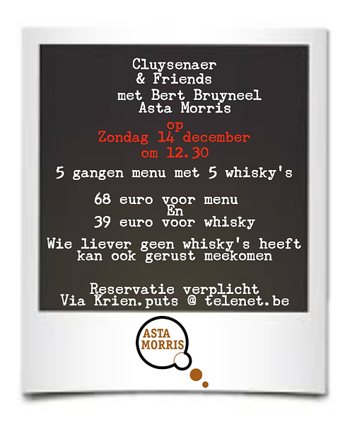 aan 55 euro per persoon = 5 uitgebreide happen met 5 whisky's